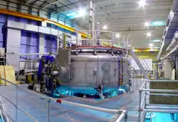 A levitated dipole is a type of nuclear fusion reactor design using a superconducting torus that is magnetically levitated inside the reactor chamber. The name refers to the magnetic dipole that forms within the reaction chamber, similar to Earth's magnetosphere. It is claimed that such an apparatus could contain plasma more efficiently than other fusion reactor designs.[1] The concept of using one as a fusion reactor was introduced by Akira Hasegawa in 1987.[2]