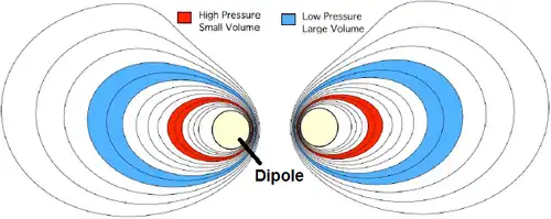 This makes the levitated dipole unique when compared with other magnetic confinement machines. In those experiments, small fluctuations can cause significant energy loss. By contrast, in a dipolar magnetic field, fluctuations tend to compress the plasma, without energy loss. This compression effect was first noticed by Akira Hasegawa (of the Hasegawa-Mima equation) after participating in the Voyager 2 encounter with Uranus.[2]