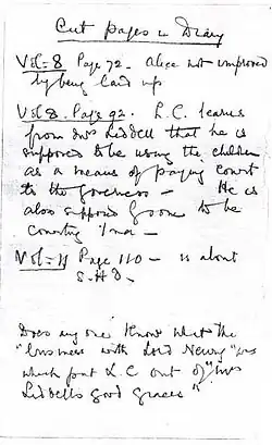 - ^ a b "The cut pages in diary document". Archived from the original on 12 January 2023. Retrieved 12 January 2023.