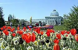 In 1981, the non-profit Lewis Ginter Botanical Garden corporation was chartered to finally establish the botanical garden using funds from the Grace E. Arents Trust. Additional adjacent land was purchased and The Pittsburgh landscape architecture firm of Environmental Planning and Design was hired in 1987 and announced a master plan for the gardens later that year.[9] The gardens were named among the most beautiful by readers of Conde Nast magazine and USA Today in 2017.[10]