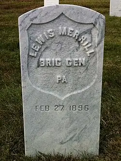 Merrill died in Philadelphia, Pennsylvania on February 27, 1896.[9] He is buried in Arlington National Cemetery.[10]