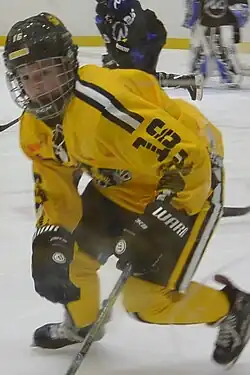 From 2014 to 2019, she attended Harvard University, playing for the university's women's ice hockey programme.[3] She scored 25 points in 36 games in her rookie NCAA season, being named a finalist for the ECAC Rookie of the Year Award and notching two assists in Harvard's Beanpot victory over the Boston College Eagles.[4] She captained Harvard in her final season with the team, putting up a career-high 26 points in 31 games, leading the team in scoring and being named an All-Ivy Honorable Mention.[5][6]