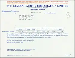 - ^ a b The company resulting from the merger of the British Motor Corporation (BMC) and Jaguar Cars in 1966