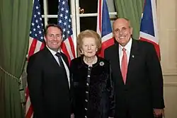 He is a strong believer in the Special Relationship between the United Kingdom and the United States.[103] He was the UK Director and founding member of The Atlantic Bridge, a UK-based charity that aims to preserve and promote the Special Relationship.[104][105] The Atlantic Bridge closed down in October 2011 after being told to cease activities by the Charity Commission for "promoting a political policy [that] is closely associated with the Conservative Party".[106]