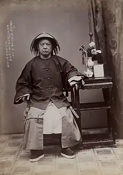 Liang Shitai 梁时泰 – also known as Liang Seetay – (fl. 1870s-1890s) was one of the foremost portrait photographers working in China in the late Qing dynasty. The artist specialized in portraits of high-ranking officials, and photographs that appealed to Chinese clients interested in literati painting. As one of the first photographers of prominent Qing Dynasty officials and other distinguished citizens, Liang Shitai's work convinced the Qing court to embrace photography as an artistic medium for the first time.[1][2] He established his studio in Hong Kong in the early 1870s, then relocated to Shanghai in the late 1870s, and later to Tianjin in the 1880s.[3] Liang Shitai's photographs are among the most historically important and visually exquisite of their time.