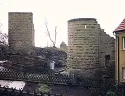 ![]() The ruins of North Castle with its bergfried and the Pfeilscharte tower | |