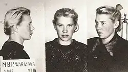 They were both arrested on 30 June 1948 by the communist authorities. She was in Osielec, when she was arrested and the others arrested included Lucjan Minkiewicz and his wife Wanda Czarnecka-Minkiewicz, Captain Henryk Borowski and Lt. Col. Antoni Olechnowicz.[2] She was sentenced to life imprisonment in 1950 and Major Szendzielarz was sentenced to death. He was executed on 9 February 1951 in Mokotów Prison.[3]