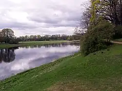 The Lielupe[a] is a river in central Latvia. Its length is 119 km (74 mi), or 310 km (190 mi) if the Mēmele River is counted as part of it. The surface area of its drainage basin is 17,600 km2 (6,800 sq mi).[1] The average fall of the Lielupe is about 0.1 m/km (0.53 ft/mi) and its average flow is 106 m3/s (3,700 cu ft/s), although a maximum of 1,380 m3/s (49,000 cu ft/s) has been reached during floods.