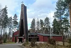 Since 1950, a congregation hall on lands rented by the parish of Laukaa had acted as a church for the people of Lievestuore. A decision to build a proper church was made in September 1979 as the congregation hall had become too small and construction began in May 1982. The church was finished and consecrated in March 1983.[21] It has seats for 130 attendants.[22]