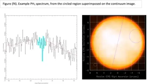 The phosphine signal was also detected in data collected using the JCMT, though much weaker than that found using ALMA.[7]