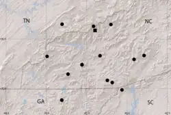 | Holotype location marked with a square, other known locations marked with circles | |
