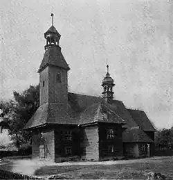 The village formerly had two churches. The most famous was the old Schrotholzkirche (wooden church) of St. Catherine that had been consecrated on November 21, 1629, by Johannes Balthasar, the Suffragan of Breslau. However, the church was destroyed in an act of arson by the Red Army in 1945. The second, present church was consecrated July 19, 1936. A Catholic school has existed in the village since the late 17th century.