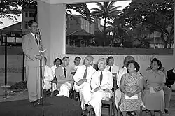 Soon after, Marshall led an all-party delegation with Governor Sir Robert Black to London, UK in March 1956, to negotiate with the British for self-rule in Singapore.[12] However, talks failed by May 1956, and in his return to Singapore, Marshall resigned as Chief Minister on 6 June.[12] On 8 June 1956, Marshall's deputy, Lim, who was also Minister for Labour and Welfare, took over and became Singapore's second Chief Minister.[6][26][27]