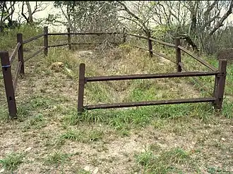 There are signs of a stone kiln 6 by 5 feet (1.8 by 1.5 m) into the steep bank below Brisbane Street. The kiln is in the form of an inverted cone with the lower part of the interior sloping inwards. The stone blocks are of silicified limestone of irregular size. Brickwork was mentioned in a newspaper report of the Scouts' excavation but is not exposed although brick fragments have been observed towards the outer side of the structure. A second kiln could exist alongside the excavated kiln as evidenced by the unusual depression into the bank roughly parallel to the excavated kiln.[1]