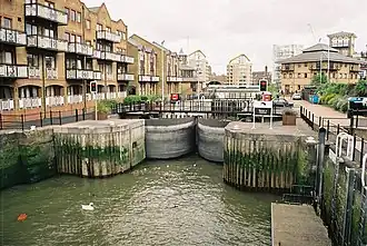 Limehouse Basin Lock is a lock forming the exit from Limehouse Basin to the Thames, in the London Borough of Tower Hamlets, England.[1] It is the final lock on the Regent's Canal. The Narrow Street swing bridge sits between the lock and the river.