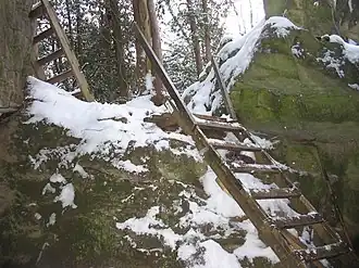 Limehouse Conservation Area is located on the Niagara Escarpment near Limehouse, Ontario and is owned and operated by Credit Valley Conservation. It is within the watershed of the Credit River, being bisected by its tributary, the Black Creek. Redside dace, a provincially threatened species of fish,[2] is found there.[3] The area is known for a system of deep rock fissures and crevices, some of which are accessible from a trail via ladders at the location known as the "Hole in the Wall".[3] Remains of the 19th century lime kilns (first opened in 1840 and ceased operations in 1917[4]) can be found in the area, making it a site of the regional cultural heritage.