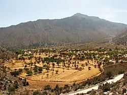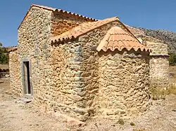 Limnakaro (Greek: Λιμνάκαρο) is a small (approx. 1000 m in the E-W direction and 600 m in the N-S) plateau located south of the Lasithi Plateau, near the villages of Avrakondes and Agios Georgios in eastern Crete, Greece.[1] Limnakaro lies at about 1120 m above sea level, at the feet of the Spathi summit that rises to 2148 m. Because of its altitude, the plateau is mainly used as grazing grounds for sheep and goats. It has a rich wild flora and grows a number of walnut, pear, apple and chestnut trees.[2] Despite a very small number of houses, there are no permanent residents at the plateau. At its western part there is a double nave church dedicated to the Holy Spirit (Agio Pnevma) that dates back to the second Byzantine period (i.e., 961-1204). The church was expanded in 1875 and has been recently restored. Limnakaro is on the European walking route E4; at a height of 1350m to its southwest in the Anestasi area there is a mountain shelter.