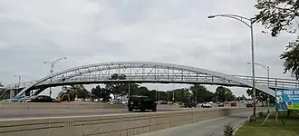 The Lincoln Park Passerelle is a through arch pedestrian bridge in Chicago. It spans Lake Shore Drive, and allows pedestrians to cross between Lincoln Park and the North Avenue Beach.[1] The bridge was designed by Ralph H. Burke and was completed in 1940.[1][2] It is a contributing property to the Lincoln Park Historic District.[1][2][3][4] It was featured in the Museum of Modern Art's exhibit "Built in USA: 1932-44", and the museum designated it one of the country's 47 best structures.[3][5][4] Preservation Chicago listed the bridge as one of Chicago's seven most endangered landmarks in 2007, as it is threatened with demolition.[6][7]