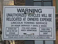 - ^ a b c Schipper, Mark (September 24, 2015). "Lincoln Towing In Hot Water for Unauthorized Towing". DNAinfo Chicago. Retrieved January 2, 2025.