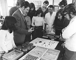 The entomology collection initially consisted mostly of boxes of specimens used for teaching, and was supplemented through light-trapping on campus in the Orchard Car Park.[2] It began to grow following the appointment of Roy Harrison as the university's first Professor of Entomology.[3] Roy Harrison and fellow entomology lecturer Rowan Emberson were instrumental in acquiring specimens from the late 1960s onward.[4] For years they led and took part in annual departmental summer field trips all over New Zealand;[5] the first of these was a collecting trip to Mt Cook in 1969, followed by expeditions to the West Coast, Stewart Island, D'Urville Island, Fiordland, Central Otago, and many other locations, with a focus on areas that were entomologically poorly-known.[3] From 1969 to 1991 there were 1–3 Departmental field trips every year, after which they became small-scale research-focussed events.[2] Emberson and others also made substantial collections in their free time for the benefit of what was then known as the Entomology Research Museum.[6]