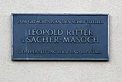 Until his death in 1895 the Austria writer, Leopold von Sacher-Masoch, lived in the Mollerschen Landhaus, a wing of the house. Today he is commemorated by a tablet on the building. A large fire in 1928 destroyed the main building of the schloss. The few remains are in private ownership and not accessible.