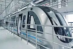 Line 20 currently uses 9 sets of Size A subway trains in eight car sets (no. 2001–2009) with a maximum speed of 120 km/h (75 mph). It's the first time that Shenzhen Metro use GoA4 automatic train operation. The GoA4 construction standard is applied to Phase I of Shenzhen Metro Line 20, which can fully achieve the automatic operation of unattended trains after opening, and the trains can also automatically sleep, wake up and conduct self inspection. In addition, the train also has more than ten functions, such as train stop control, door platform door alignment isolation, etc.[8]