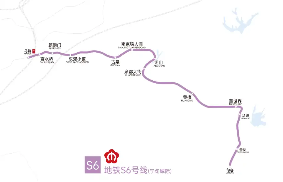 南京地铁S6号线西起南京市马群站,终到句容市南沿江高铁句容站。线路全长43.64公里,最高运行时速120公里