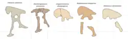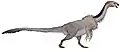 Lingyuanosaurus is believed to represent an evolutionary transition within therizinosaurs. Its ilium shows the strongly upturned iliac crest of later-diverging therizinosaurs, in contrast to the roughly contemporary Jianchangosaurus and Beipiaosaurus. It also has a relatively robust femur and a very deep acetabular process in comparison with those taxa and with Falcarius — which was believed to be more cursorial than later-diverging therizinosaurs. The relative shortness of the tibia relative to the femur of Lingyuanosaurus also suggests that it was not a very adept runner. However, the authors note that the evolution of these adaptations was probably not a linear process and may have involved multiple evolutions of each of these features.[1] A later publication centered on the genus Beipiaosaurus remarked that the pre-acetabular blades on the ilium of Lingyuanosaurus are very well-developed and share a similar morphology with that of the derived genera Segnosaurus and Nanshiungosaurus.[3]