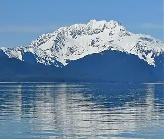 Lions Head Mountain is a 5,400+ ft (1,650+ m) mountain summit located in the Boundary Ranges of the Coast Mountains, in the U.S. state of Alaska. The peak is situated in the Kakuhan Range, 46 mi (74 km) northwest of Juneau, and 3 mi (5 km) east of Lynn Canal, on land managed by Tongass National Forest. Although modest in elevation, relief is significant since Lions Head Mountain rises 5,400 feet above the Berners River Valley in less than three miles. The peak's descriptive name was applied in 1867 by George Davidson, geographer with the United States Coast Survey, because its serrated profile resembles a lion couchant.[5][6] This name was published in the 1869 Coast Pilot, and officially adopted in 1929 by the U.S. Board on Geographic Names.[5]