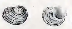 | Original drawing with two views of a shell of Liotella cancellata | |