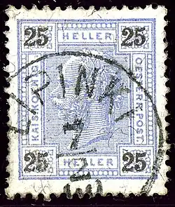 Austrian KK 25 heller stamp, cancelled LIPINKI in 1900