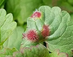 Liposthenes glechomae is a species of gall wasp in the family Cynipidae. It is found in Europe and Northern Asia (excluding China)[1][2] as well as North America where it and its host plant Glechoma hederacea are invasive, non-native species.[3] Galls may appear as small red blemishes on foliage and develop into large green galls nearly as long as one of the plant's leaves.