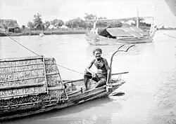 Lis-alis boats usually provide cargo carrying services in general, carrying the catch from fishing boats at the same area, and as ferry boats from Gresik to Madura.[1] Bigger lis-alis act as favorite transport boat to carry fishes from other fisherman in sea to Surabaya. The boats is about 10–12 metres long with a deckhouse that carried processing plant for preserving the fish in the sea. They brought about 0.5 ton rough sea salt in a box. Fishes were sterilized in cooking water, then grinded and stirred in the pot until it cools down and packed in bottles to be sold as shrimp paste. The reason for this sea sterilization is that there are not enough space to dry the fish in the boat, rainstorms often occurring and ice was not used. This means a cargo of fishes won't last long, especially if there are sudden strong winds.[5]