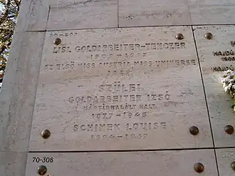In the same year of 1929, she finished second at the Miss Europe beauty contest in Paris. In the summer of 1930 Goldarbeiter married Fritz Spielmann, who came from a Viennese industrialist family and whom she had met in Paris. They divorced in 1937. During WWII, because her mother was Protestant, she did not suffer Nazi persecution. She married her second cousin Marczell "Marci" Tenczer in 1949. Marci and Goldarbeiter grew up together in Vienna, and he continued to live in Goldarbeiter's house after she married Spielmann.[7] Marci was an amateur filmmaker. Goldarbeiter's modeling talent was discovered by Marci during the early 1920s. He used to take photographs of her when he moved to Vienna from Szeged in the late 1920s.[7][8]