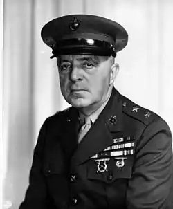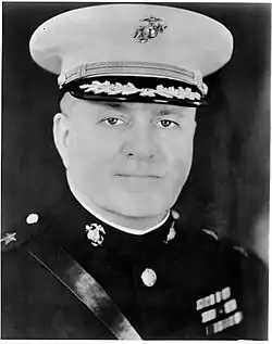 Veteran of Banana Wars and Battle of Tarawa; later commanded Department of the Pacific and Marine Corps Recruit Depot Parris Island; Navy Cross and two awards of Navy Distinguished Service Medal