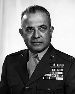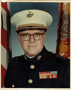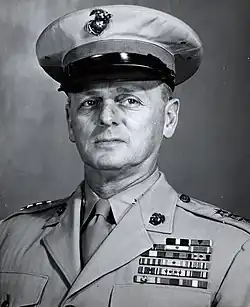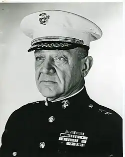 Veteran of Banana Wars, Battle of Okinawa and Korean War; later commanded Force Troops, Fleet Marine Force, Atlantic and served as Inspector General Marine Corps; Navy Cross, three awards of Legion of Merit, Bronze Star Medal with Combat "V"