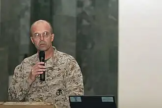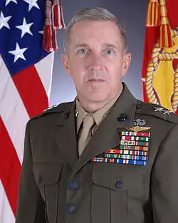 Veteran of Iraq War; later served as commander of II Marine Expeditionary Force; two awards of Defense Superior Service Medal, two awards of Legion of Merit