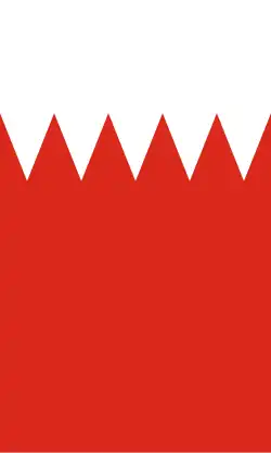 2002–present | Flag of Bahrain | A white field on the hoist side separated from a larger red field on the fly by five white triangles in the form of a zigzag pattern. |