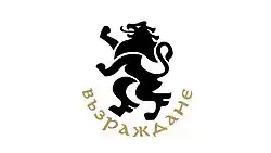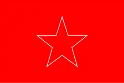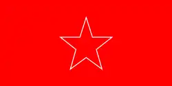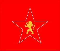 A red square flag with a white outline of a star and the Bulgarian lion in the center.