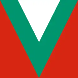 A green and red flag with the middle part of coat of arms.