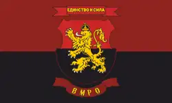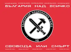 The Bulgarian flag with a lion on a red background in top-left corner.