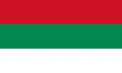 A horizontal tricolor of red, green and white.