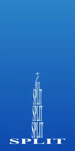 1995 | The variant of the commemorative flag of Split, celebrating the 1700-year anniversary of the construction of Diocletian's Palace. | A vertical blue flag with a white-color word art repeatedly reading 'Split', stacked together to depict Diocletian's Palace and its bell tower. |