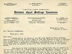 - ^ a b c d e f g "Suffragists in Delaware". Turning Point Suffragist Memorial. Retrieved November 18, 2020.