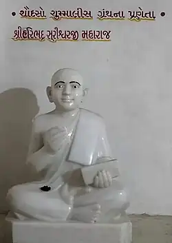- Vijayanandsuri - Vijayanand Suri also known as Atmaramji of Gujranwala, was the first Swetambar Murtipujaka Jain monk in modern times to receive the title of Acharya.[15][16] Born and raised in Punjab, he was initiated as a Sthanakvasi monk and later joined the Murtipujaka tradition. He travelled extensively in Gujarat, Rajputana and Punjab; he organised and reformed Jain community, ascetic orders and literature. He wrote several books in Hindi and was invited to the first World Parliament of Religions in 1893 which was attended by Virchand Gandhi later.[17]