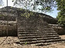 Temple 1 | Maya | 20 | 600 CE to 900 CE | The city's buildings were made from fired-clay bricks with mortar made from oyster shells, unique among Maya sites. Many are decorated with iconography and/or hieroglyphs. | ||||