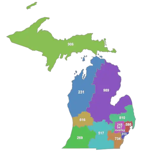 The U.S. state of Michigan is divided into eleven numbering plan areas (NPAs) in the North American Numbering Plan (NANP), which are served by a total of twelve area codes. Only one NPA is an overlay complex.