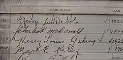 - Lou Gehrig, Columbia University, 1925 – MLB first baseman, New York Yankees; Baseball Hall of Fame