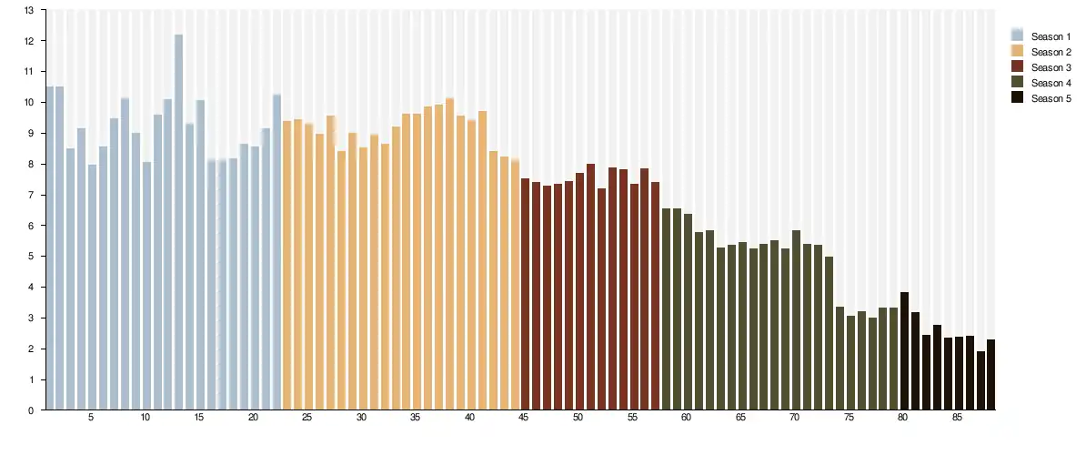 - ^ "Prison Break: Season Five Ratings". May 31, 2017. Retrieved August 1, 2017.