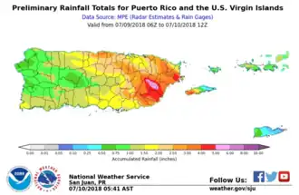 - ^ Event: Flash Flood in Humacao, Puerto Rico (Report). National Centers for Environmental Information. July 10, 2018. Archived from the original on December 23, 2020. Retrieved December 21, 2020.